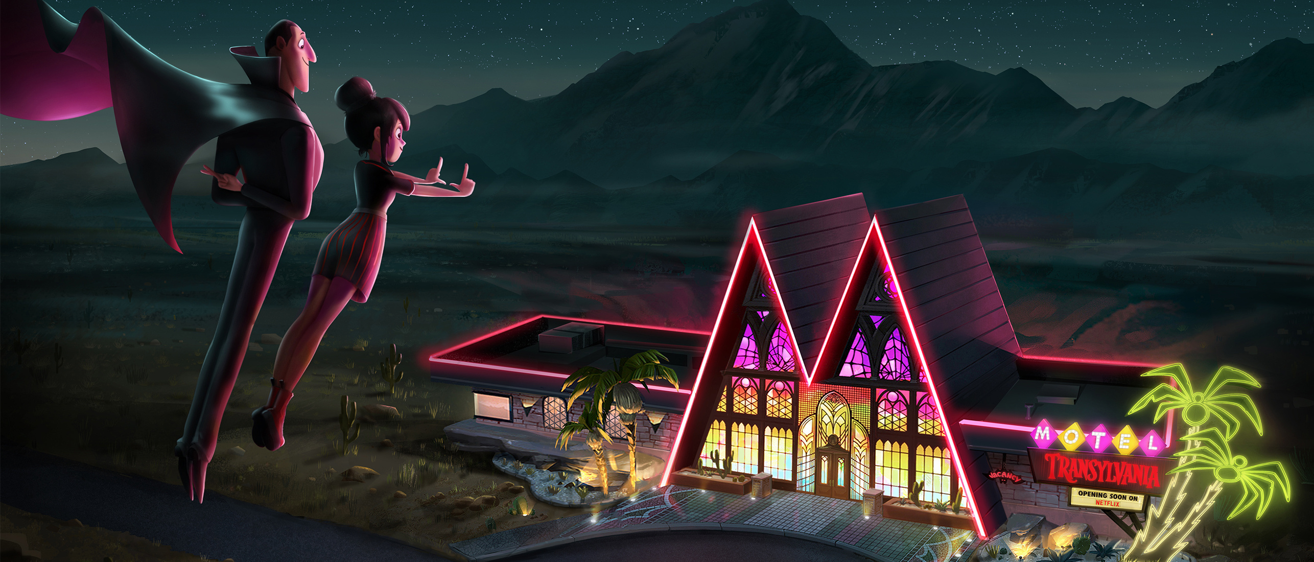 Breadcrumb Home Projects Series MOTEL TRANSYLVANIA MOTEL TRANSYLVANIA Coming Soon to Netflix Motel Transylvania is open for business, as Drac & Mavis take a break from their Transylvanian haunts to set up a brand new resort for humans and monsters in the California desert. Vampires and sunshine… what can go wrong!?